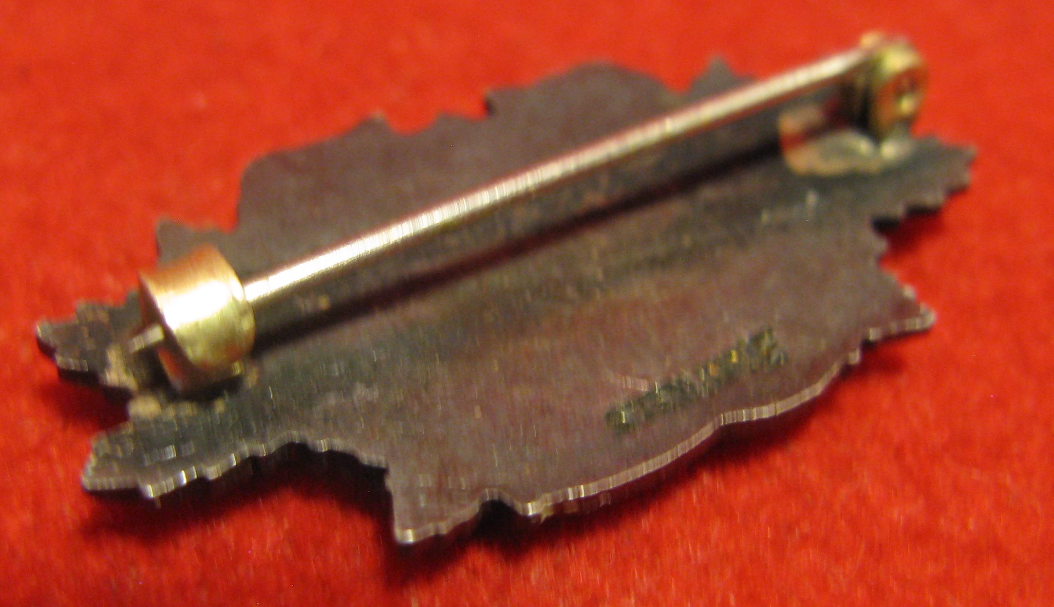 You are viewing a WWI era Royal Canadian Army Ordinance Corps sweetheart pin. Enameling is 99%. Made of silver with enameled leaf design overlaid with a small enameled ordinance corps insignia . Marked "Sterling" on the back. The attachment pin is in good functional condition with its original silver hinge. (View scans). The badge is a fine example for wear or for display purposes.