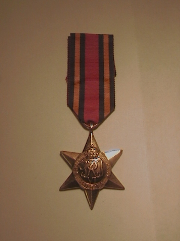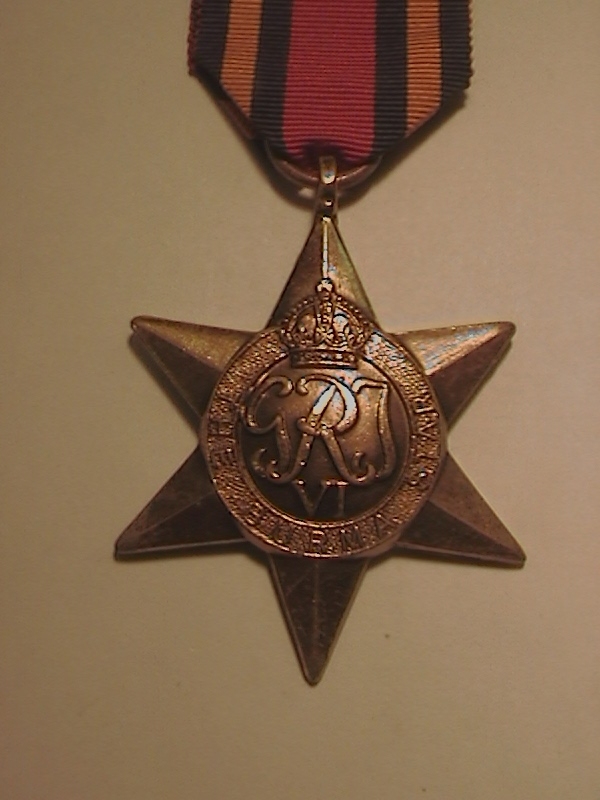 Full size Burma Star Medal with ribbon. Issued to those who served in the South Asia theater of WWII, ie. "Wingates Circus" volunteers, East India Frontier,and others. Very good condition.