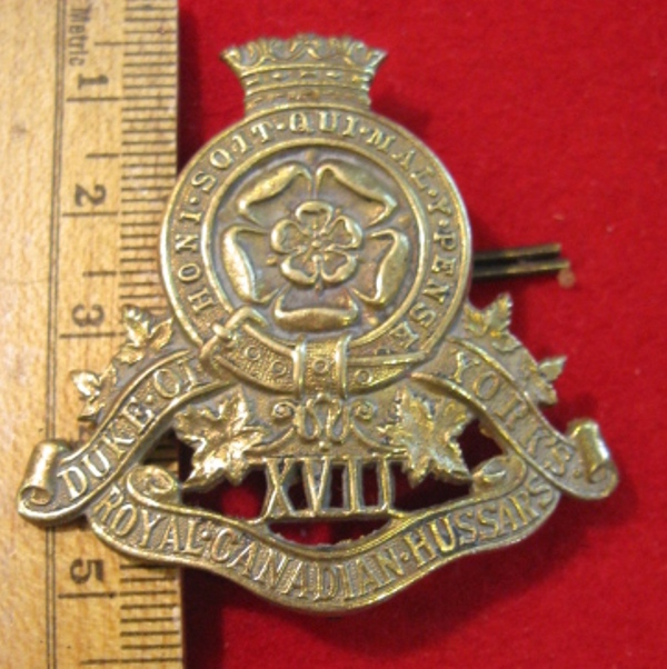 WW2 era - 17th Duke of York's Royal Canadian Hussars Cap Badge