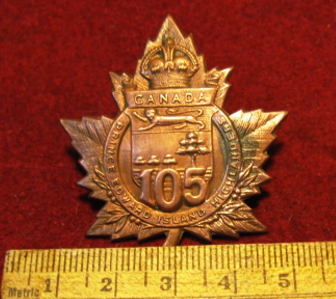 Called the "P.E.I. Highlanders",this battalion was, of course, raised in Prince Edward Island, with headquarters in Charlottetown,during the winter of 1915. This was a large battalion, considering the population of the Island at that time, fielding 1124 officers & enlisted ranks. The 105th sailed for England on July 16th, 1916. Upon arrival they became part of the 104th Infantry battalion, fighting in France...