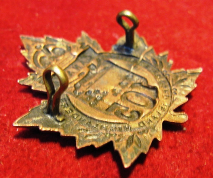 You are viewing a vintage CEF WWI 105th Battalion Cap badge. This Highlander badge is made of copper, with both original horizontal lugs in good order. This is a high relief leaf design with no chips or dents. This one was most likely made by Hemsley or Tiptaft, but with no apparent maker mark evident.