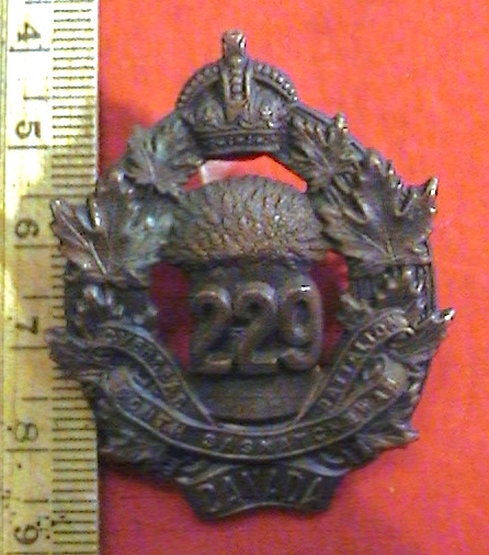 You are viewing a vintage CEF WWI229th Battalion Cap badge. Made ofcopper, with both originalhorizontallugsintact andin good order. This is a high quality design, made with the stamping method,with no chips or dents. Note the"South Saskatchewan"motif whichappearsin the scrolling underneath the 229.It is maker marked "Crichton's Moose Jaw". This battalion wasformed in Saskatchewan, with headquarters in Moose Jaw, during the summer and fall of 1916.Thiswas quite a small battalion. 443 members of the229th sailed for England onApril18th 1917. Upon arrival they became part of the 15th Reserve Battalion supplying re-inforcements to otherbatallions fighting in France. Guaranteed 100% genuine. Our items are listed in US dollars.Forcredit cardpayment over the phone: 1-403-262-2397 (1:00pm to 5:00pm Monday through Saturday - mountain time!) or by contact us by email at creidm@gmail.com .We will also accept Paypal; click the link below. Notethat you must assume responsibility for loss in shipping if you declineour tracking / insurance offer. I will happily combine items to save shipping costsif you purchase other items as well... We accept prepaid authorized returns within 14 days of shipping, for full product credit, if you are not satisfied.