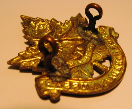 You are viewing a rather large collar for the Kings Canadian Hussars. This badge is made of brass with both original lugs intact and in good order. An excellent example of this near 100 year old specimen.