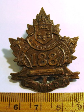 You are viewing a vintage WWI CEF188th Battalion Cap badge. This badge is made of browning copper. Both lug type attachments are original and in good order. Very interesting design on this badge. The 188th was raised in Northern Saskatchewan in Prince Albert during the summer of 1916.1036 memberssailed for England on October 13th 1916. Upontheir arrival they becamepart of the 15th Reserve battalion.