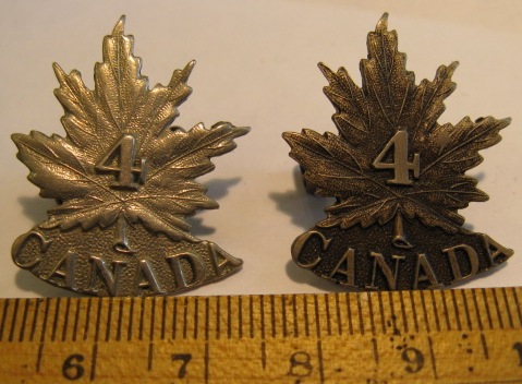You are viewing a rare collar set for the WWI 4th CEF batallion. All original lugs are intact andin good order.