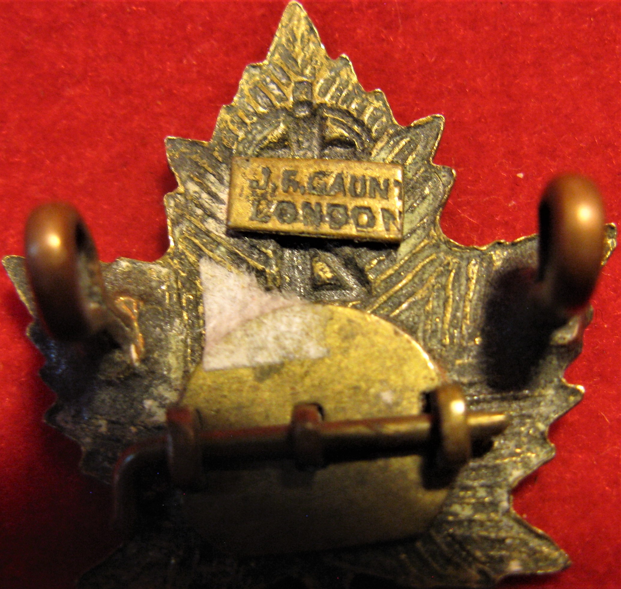 You are viewing a vintage WWI CEF 4th Canadian Railway Troops Collar Badge set of 2. These badges are made of browning brass. Both badges have lug type attachments which are original and in good order. The red square of felt is till present and in good order on one of the badges, the other felt square is missing. Both badges are hallmarked "J.R. Gaunt London".