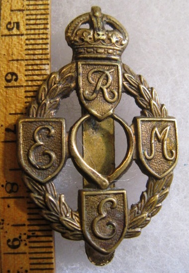 You are viewing a vintage WWII British Royal Electrical Mechanical Engineers (REME) cap badge with tang style attachment. This o/r badge is made of fine brass. A rather hard to find WW2 item. Their function was similar to the Canadian RCEME in that they served on construction, mine laying and sweeping, as well communications and vehicles...