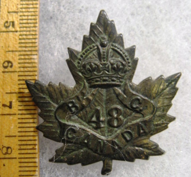 This battalion has an interesting history. It was raised from volunteers from Vancouver Island, with HQ in Victoria. Formed during the late summer of 1914, the 48th sailed for England exactly a