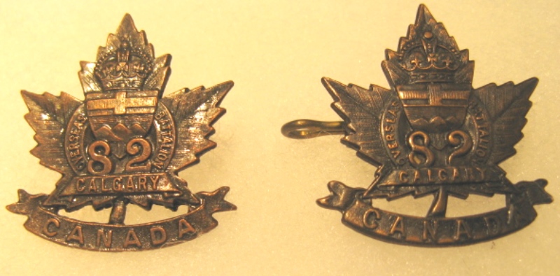 CEF 82nd Battalion Cap Badge & Collar set (City of Calgary)