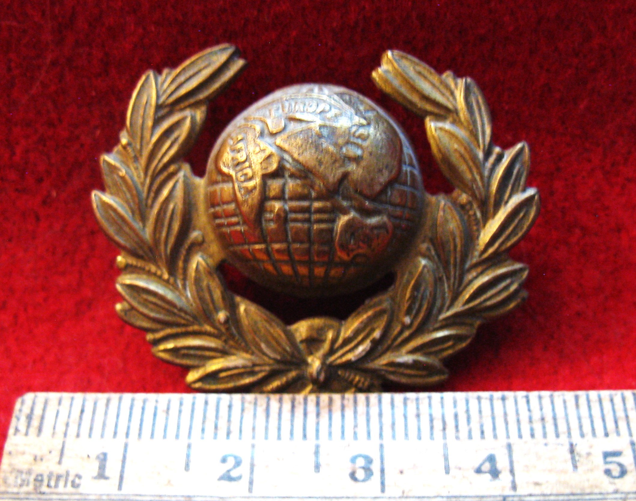 You are viewing the scans for an excellent example of a British Royal Marines collar badge. This badge is made of brass with its original lug type fasteners intact and in good order.