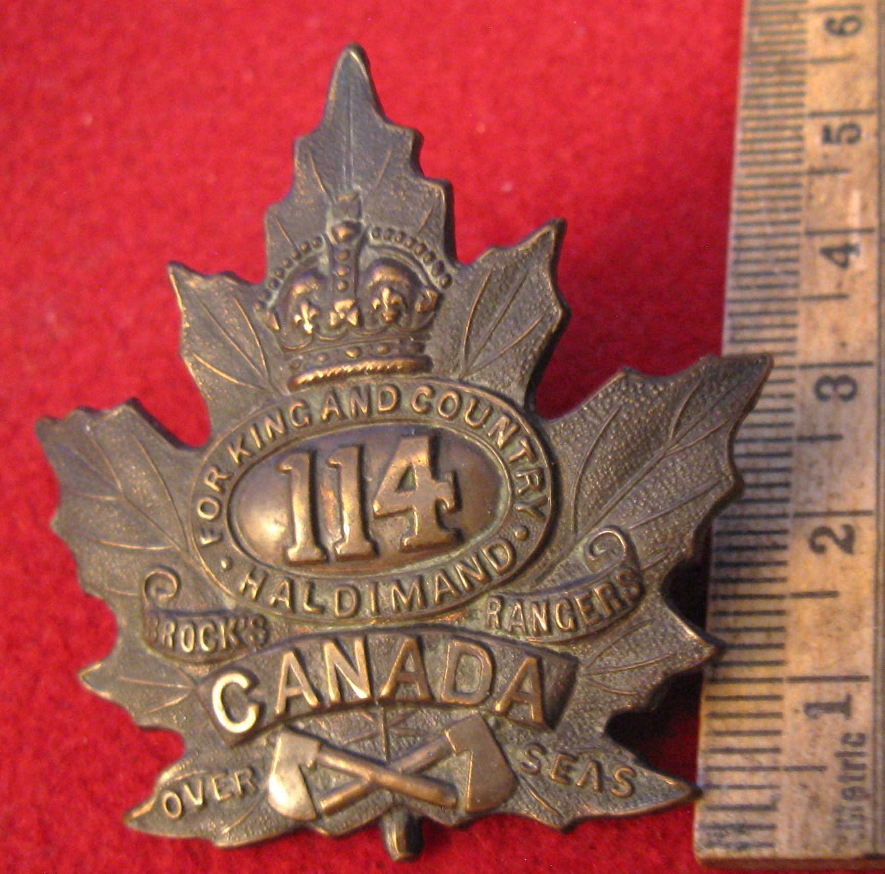 You are viewing a vintage CEF WWI era 114th Battalion Cap Badge. Named on the badge as "Brock's Rangers". This badge is made of fine highly detailed browning copper; made using the stamping method. Both "flat" lug type attachments are original and in good order. Hallmarked "P.W.Ellis & co, TO 1916". A very hard to find badge from the CEF era of the 20th century...