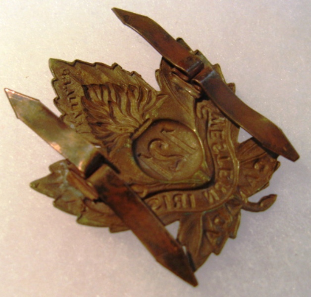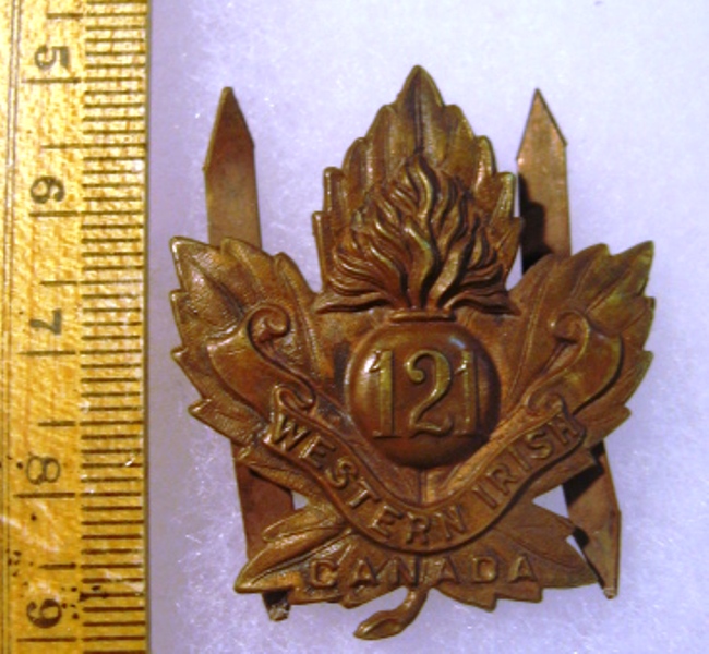 You are viewing a vintage CEF WWI era 121st Battalion Cap Badge. Named on the badge as "Western Irish ". This badge is made of fine highly detailed browning copper; made using the stamping method. All "tang" style lug attachments are original and in good order. Still very sturdy. A very hard to find badge from the CEF era of the 20th century. ..