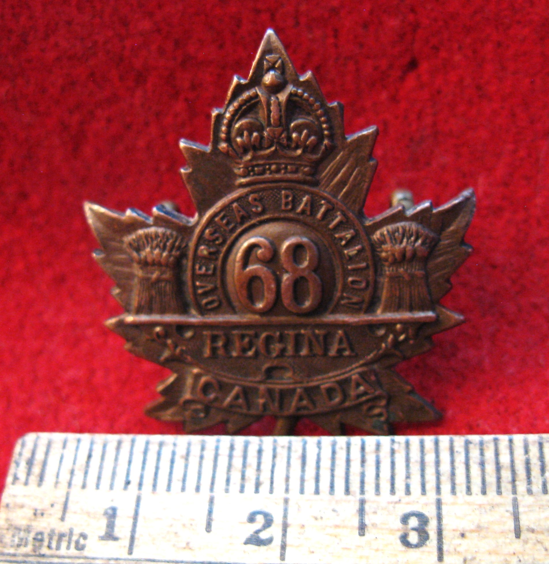 CEF 68th Battalion Collar badge WWI - Regina Saskatchewan