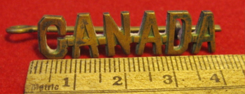 Above are the scans for this WWI era large lettered "voided" "Canada" shoulder titles. It comes with both horizontal lugs original and in good order. An excellent solid brass badge, hard format to find.