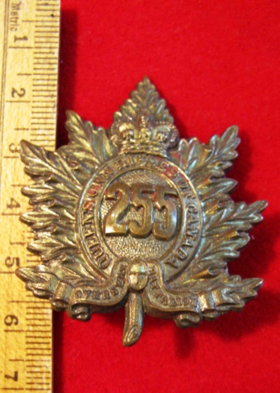 The 255th was raised from the Queen's Own Rifles Regiment in Ontario with headquarters in Toronto, during the summer of 1916. They sailed for England on June 2nd 1917. It was quite a small