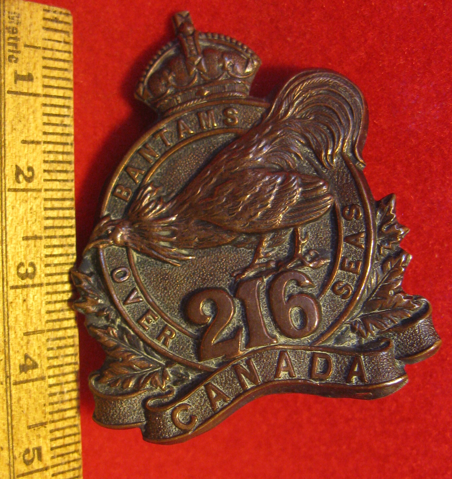 Formed in mid 1916. This battalion was raised in Toronto, Ontario, with headquarters in Toronto. They were known as the "Toronto Bantams". The 216th sailed
