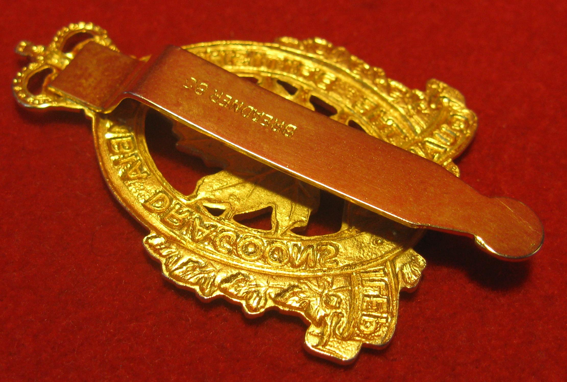 original tang type attachment very clean, this badge is hallmarked "Breadner-85" ,exemplary of this fine armored regiment which had its origins as a mounted rifle unit.