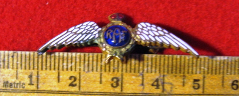 You are viewing an original RAF WWII enameled sweetheart wings broach. Royal Air Force, Battle of Britain era jewelry, very clean, made with colored enameling over brass. The enameling is 99%, and the pin is hallmarked with "Weld... Manu" and it still has its original jeweller installed straight pin attachment intact and in good order.
