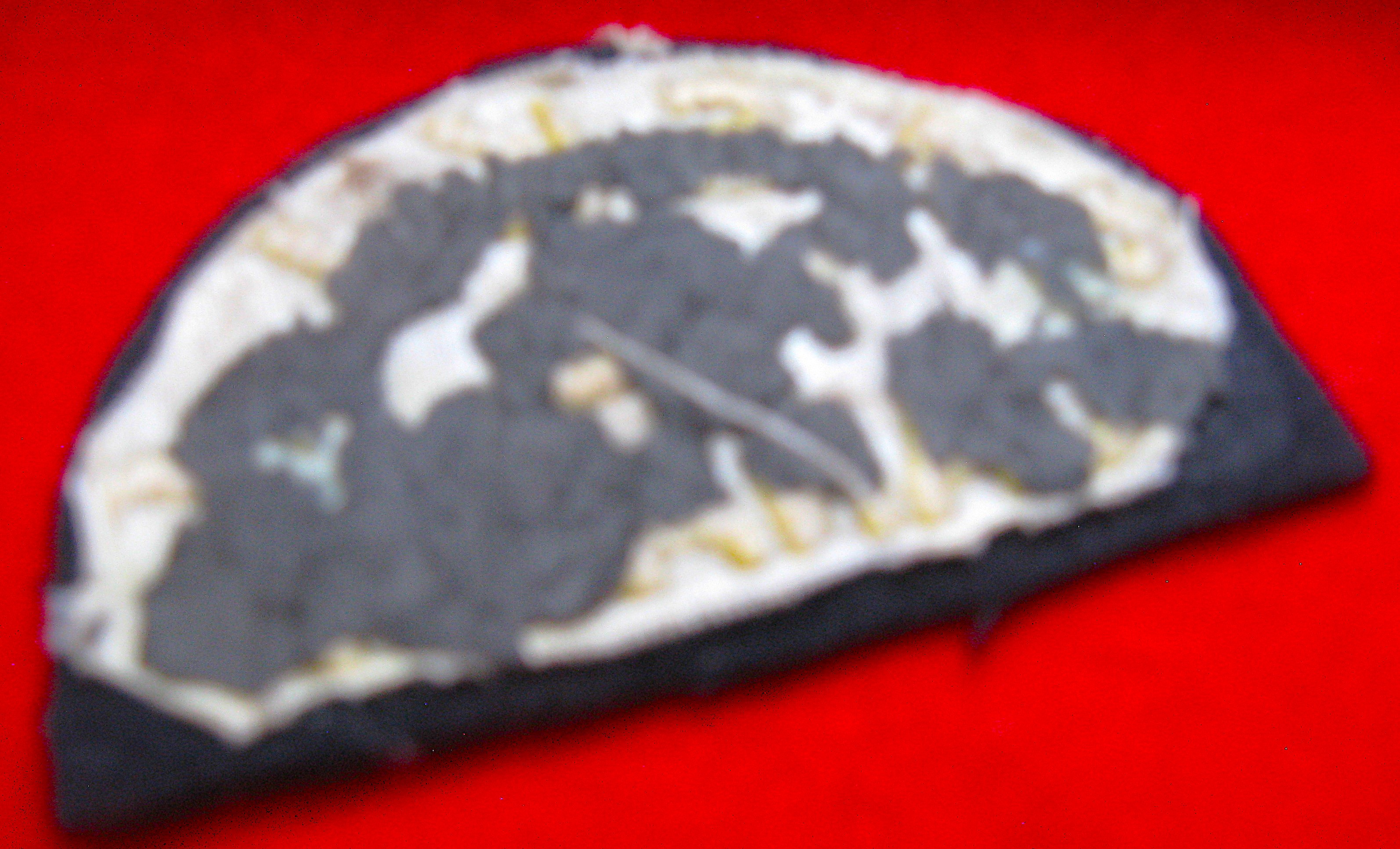 Machine Gun shoulder flash. This flash is made of black felt and displays beauitfully. Its backing is cheesecloth and has some glue residue from previous display. All items are still in