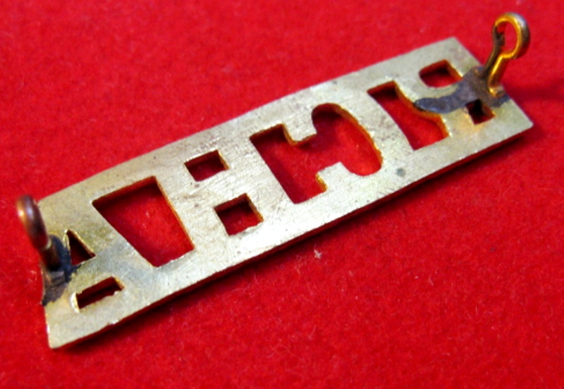 Above are the scans for a WWII era Royal Canadian Horse Artillery shoulder device. Both lug type attachments are original and in good order. Made of anodized brass.