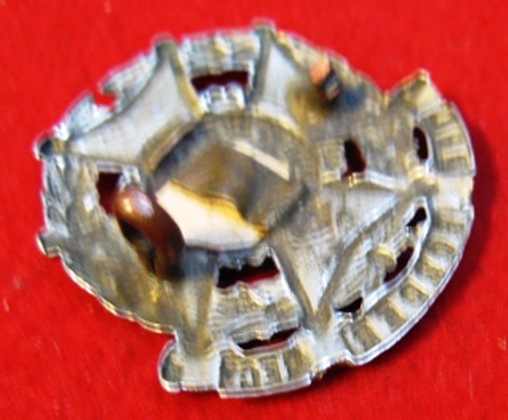 You are viewing the scans for the third of three of British Border Regiment collar badges we have presently in stock. They run from the 1881 period of army reformation through to post WWII. This clean badge is an interesting early voided center varient with no crown or Battle Honors shown. Not sure of the time period. It is made of white metal with one lug type attachment cut but the orther is in good order.
