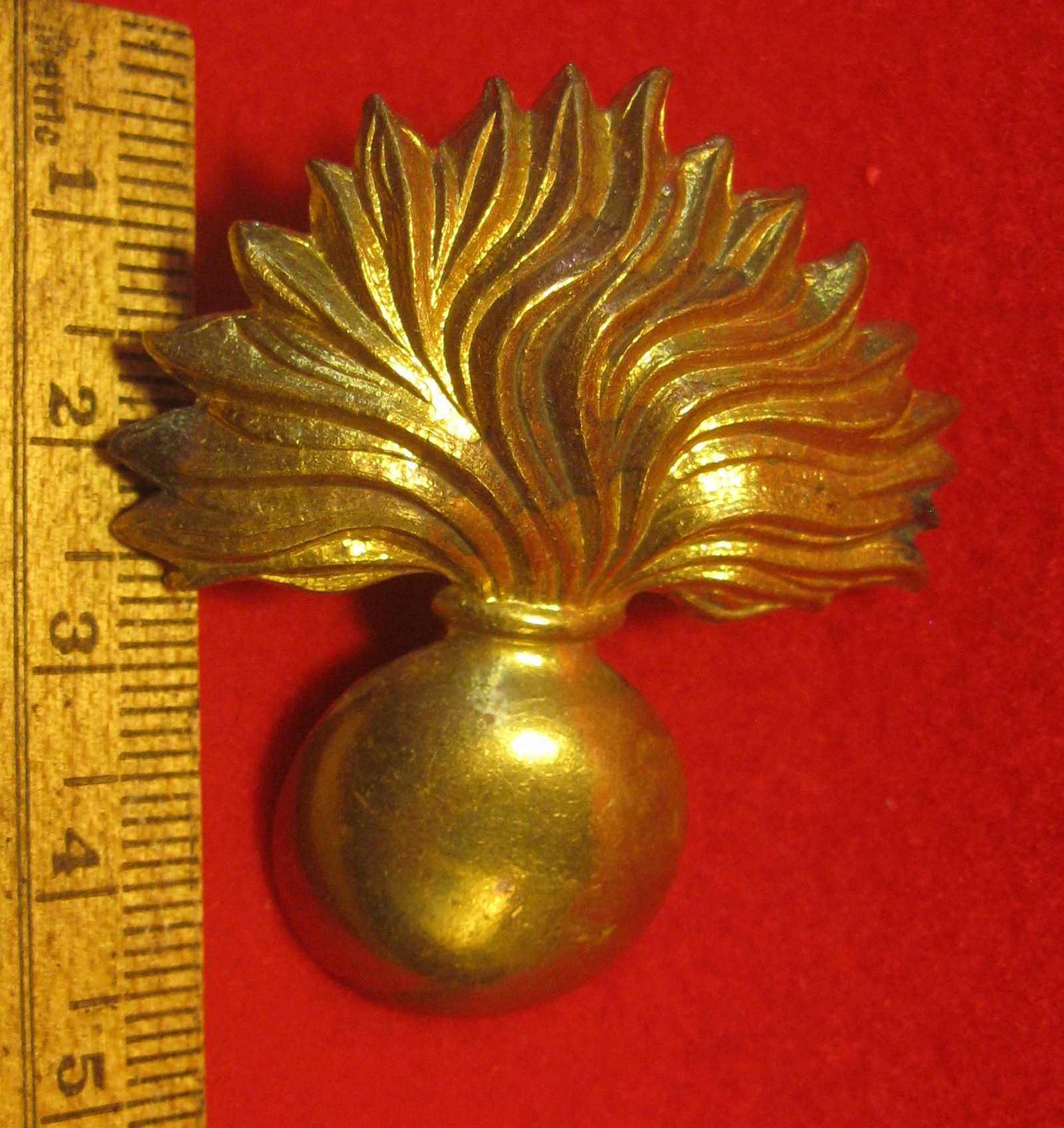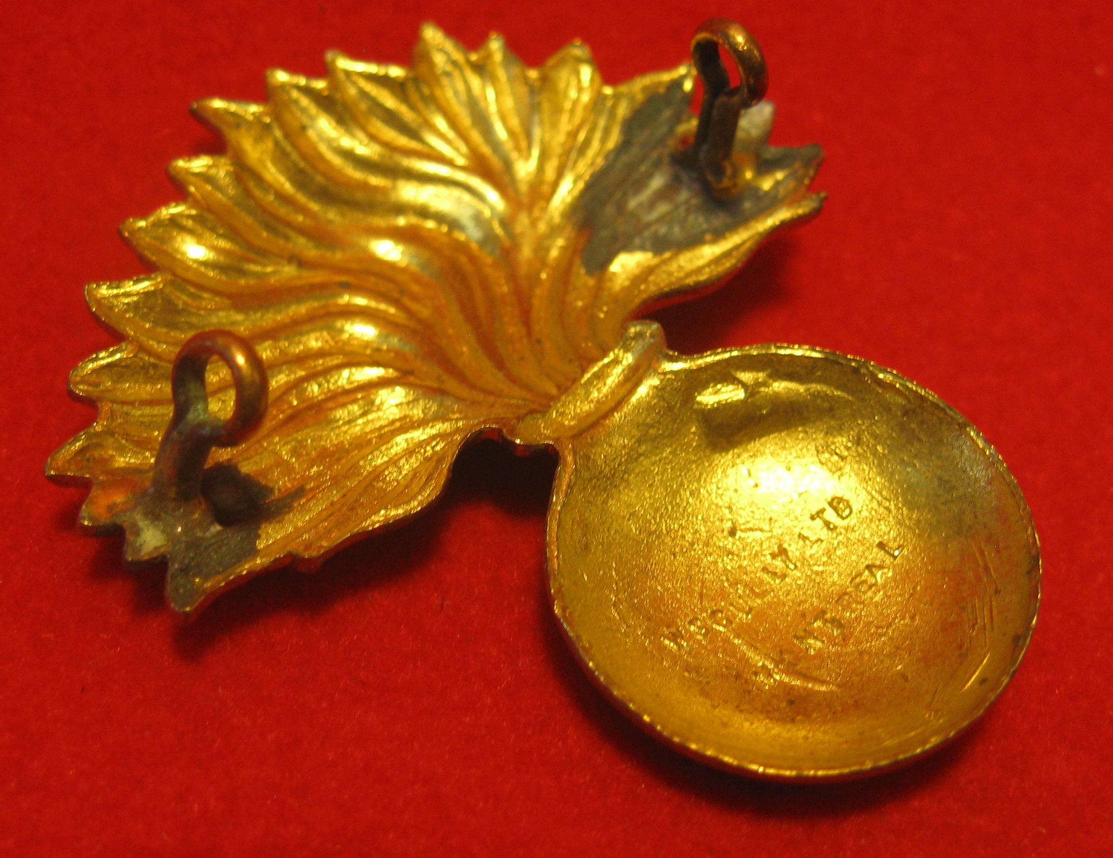 The scans above show a Royal Winnipeg Grenadiers brass cap badge. It is in very good condition with both lug type fasteners in good order. One can see the "Skully - Montreal hallmark in the scans.
