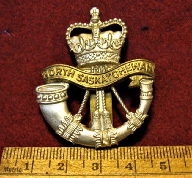 You are viewing a post WW2, QC era, cap badge for the Canadian Infantry Regiment known as the North Saskatchewan Regiment , out of Prince Albert & Saskatoon. It is a high quality bi-metal badge, made of white metal and, what appears to be brass, and has a tang type fastener on the reverse and no maker marks. Very clean condition ...