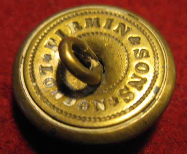 Above are the scans for a clean un-dented specimen of a Victoria Crown Infantry Button. This button has its uniform attachment intact and in good order. Still in excellent condition for a 100 year button, Hallmarked Firmin & sons, London..