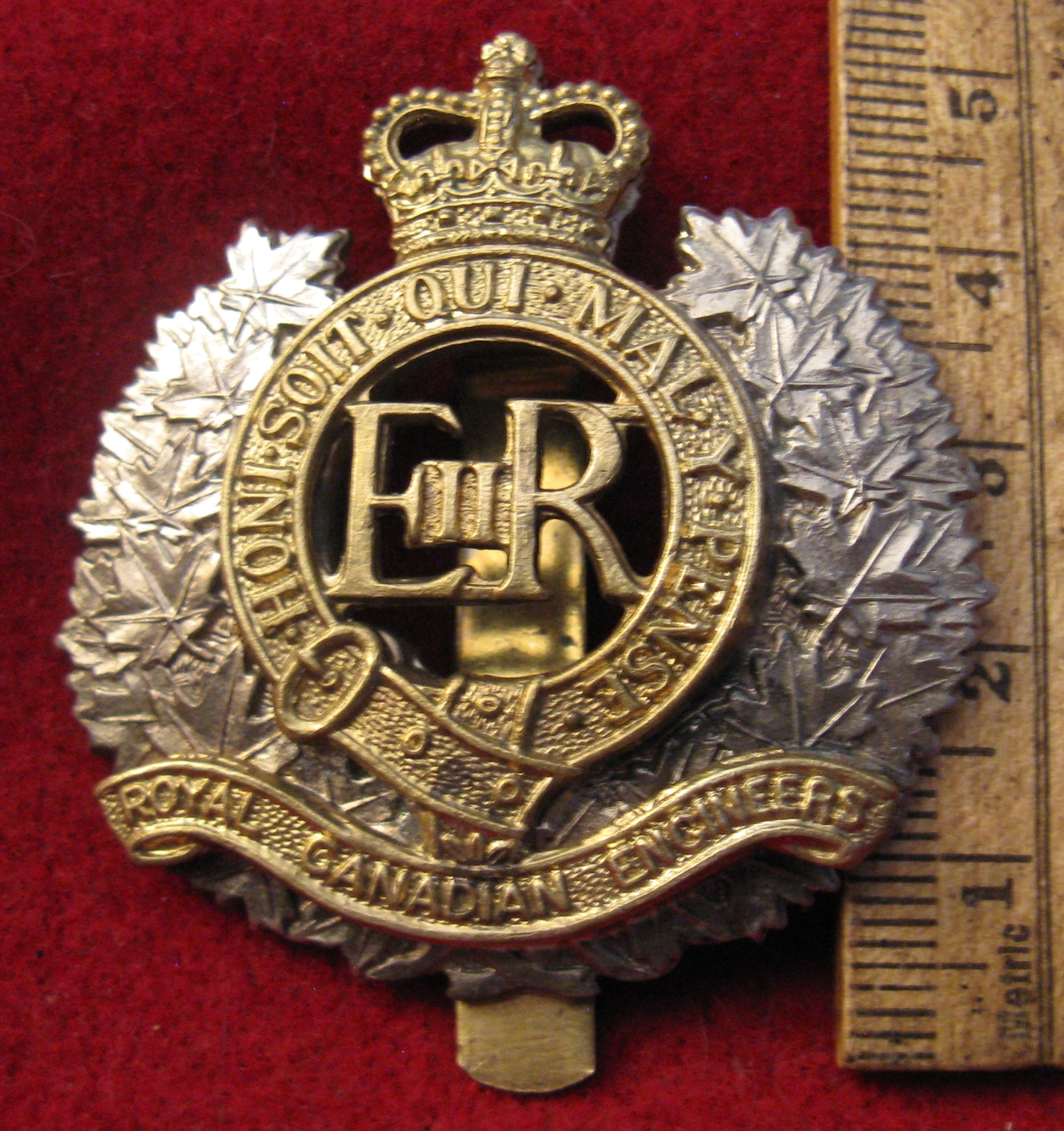 metal base, a fine near mint specimen. Note the "Royal" in front of "Canadian Engineers". The "Royal" designation was added by King George V, after WWI due to the exemplary service rendered by