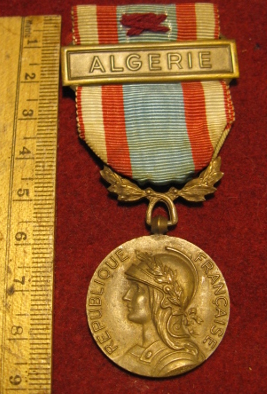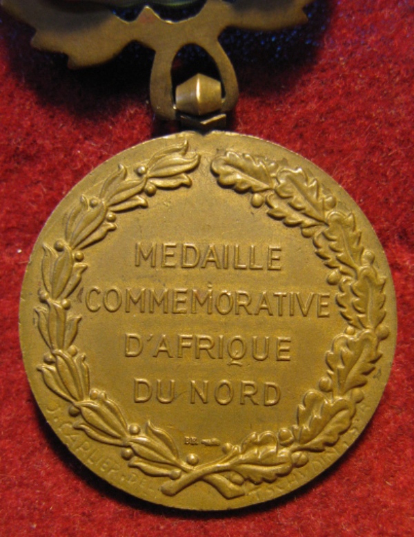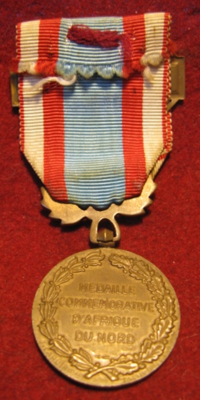 You are viewing the photos for this Campaign Medal for Algeria, from the country of France. Most likely inter-war period (1930's) It is a 3 piece medal with original ribbon, with a hinged attachment over a bronze roundel with a soldier's head and with "Medaille commorative d'Afrique du Nord" on the obverse. Comes with an "Algerie" bar. View scans for details.