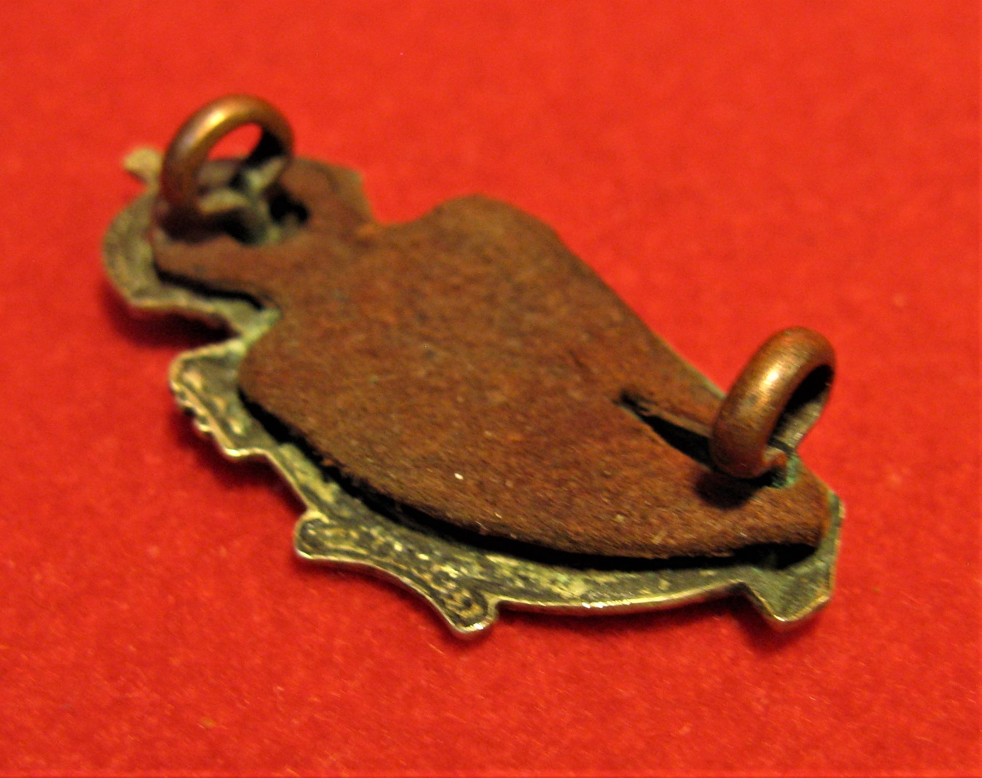 British collar badge. It has its original lug type fasteners and is backed with a small leather strip. No hallmark was noted and both lug type attachments are original and in good order.