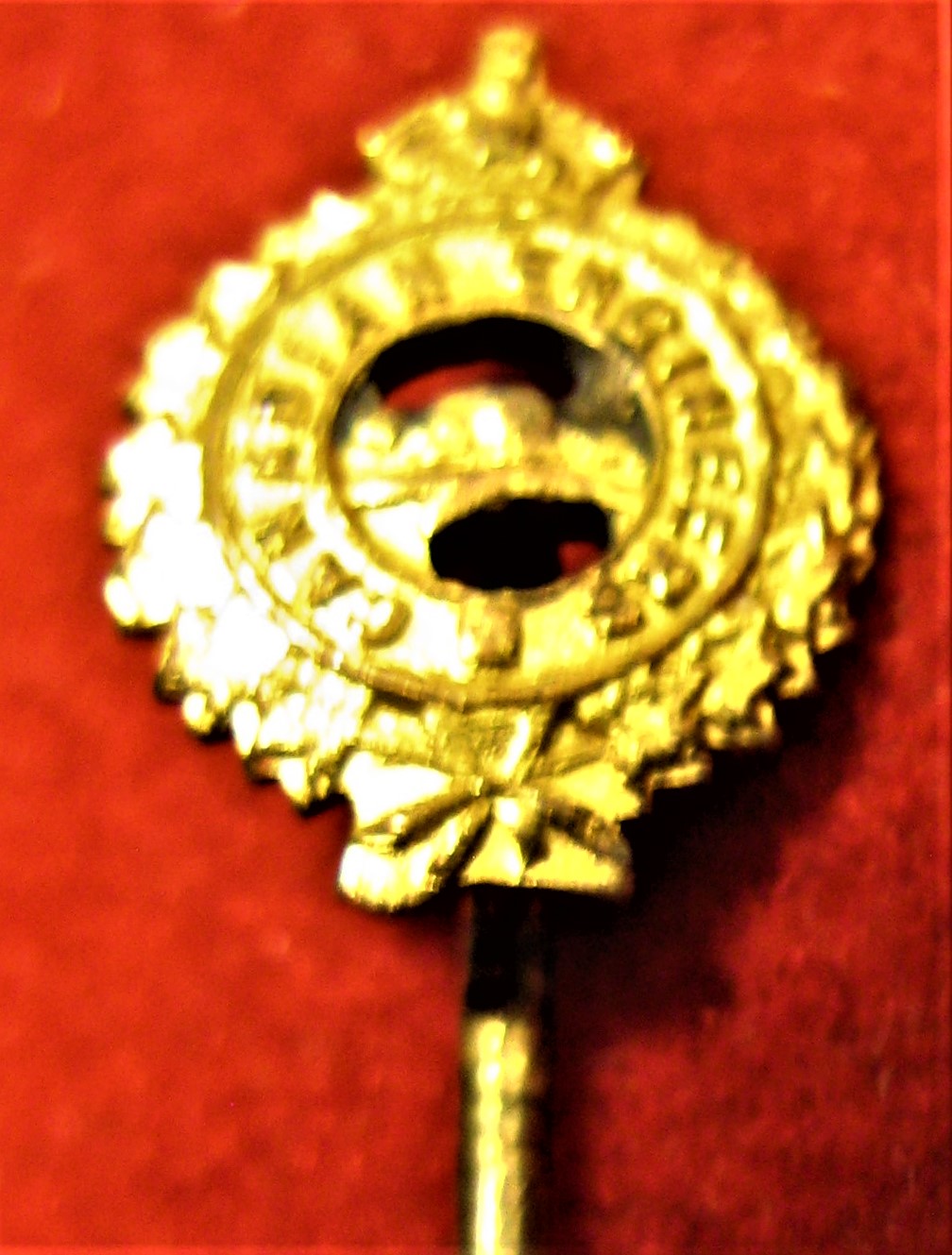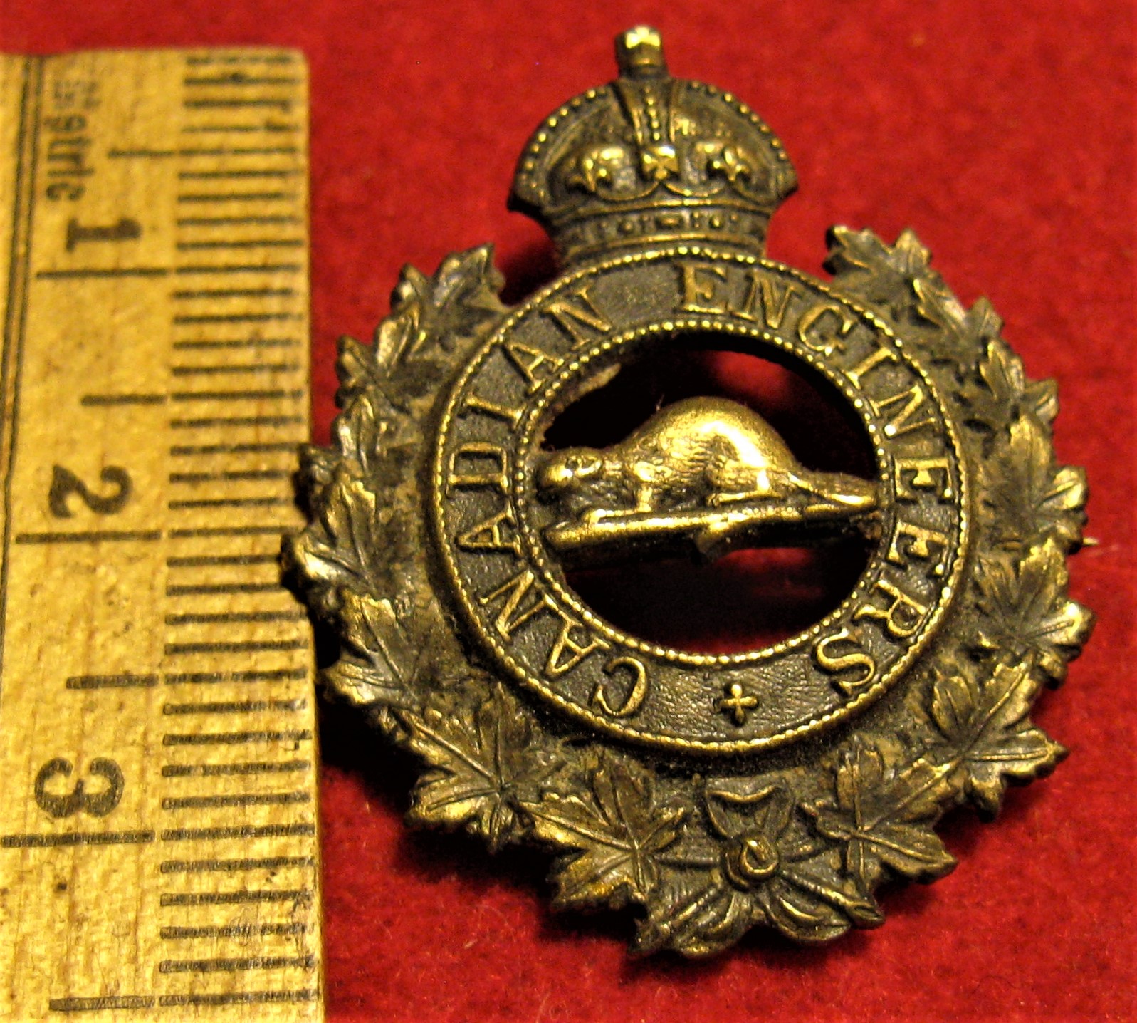 The above scans show a six piece WWI Canadian Engineers 5 pieces ... cap badge, button, titles, collar badge, and stick pin. All made of brass, in very good condition, design