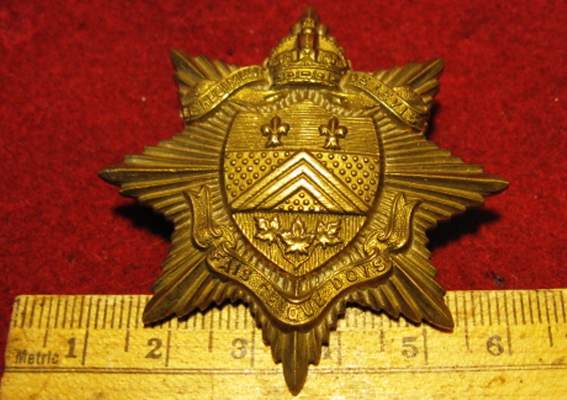 You are viewing a vintage Regiment de Levis 1940 eight pointed star pattern approved cap badge. This browning brass badge has horizontally placed original lug type fasteners both intact and in good order.. A very rare brass Province of Quebec badge of the WW2 era.