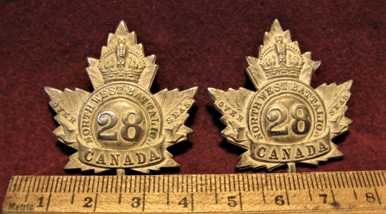 WWI CEF 28th Battalion Silver Collar badge set (2)