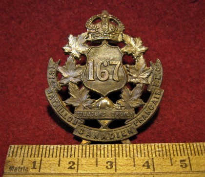WWI 167th CEF Battalion Cap Badge
