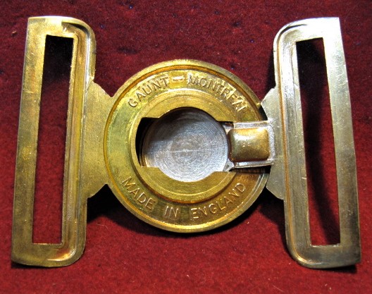You are viewing the scans for a QC Era Royal Canadian Army Pay Corps Belt Buckle. A 2 piece buckle made of heavy bronze with 2 belt attachments built in. This one is hallmarked as "Gaunt Montreal" maker. Was used with the heavy web service belt, and later with the white plastic dress belt of the Trudeau era. View scans for details.