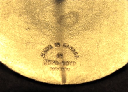 Comes with its original spinner type attachment and pin back. Nicely hallmarked "Made in Canada by Bond-Boyd Toronto".