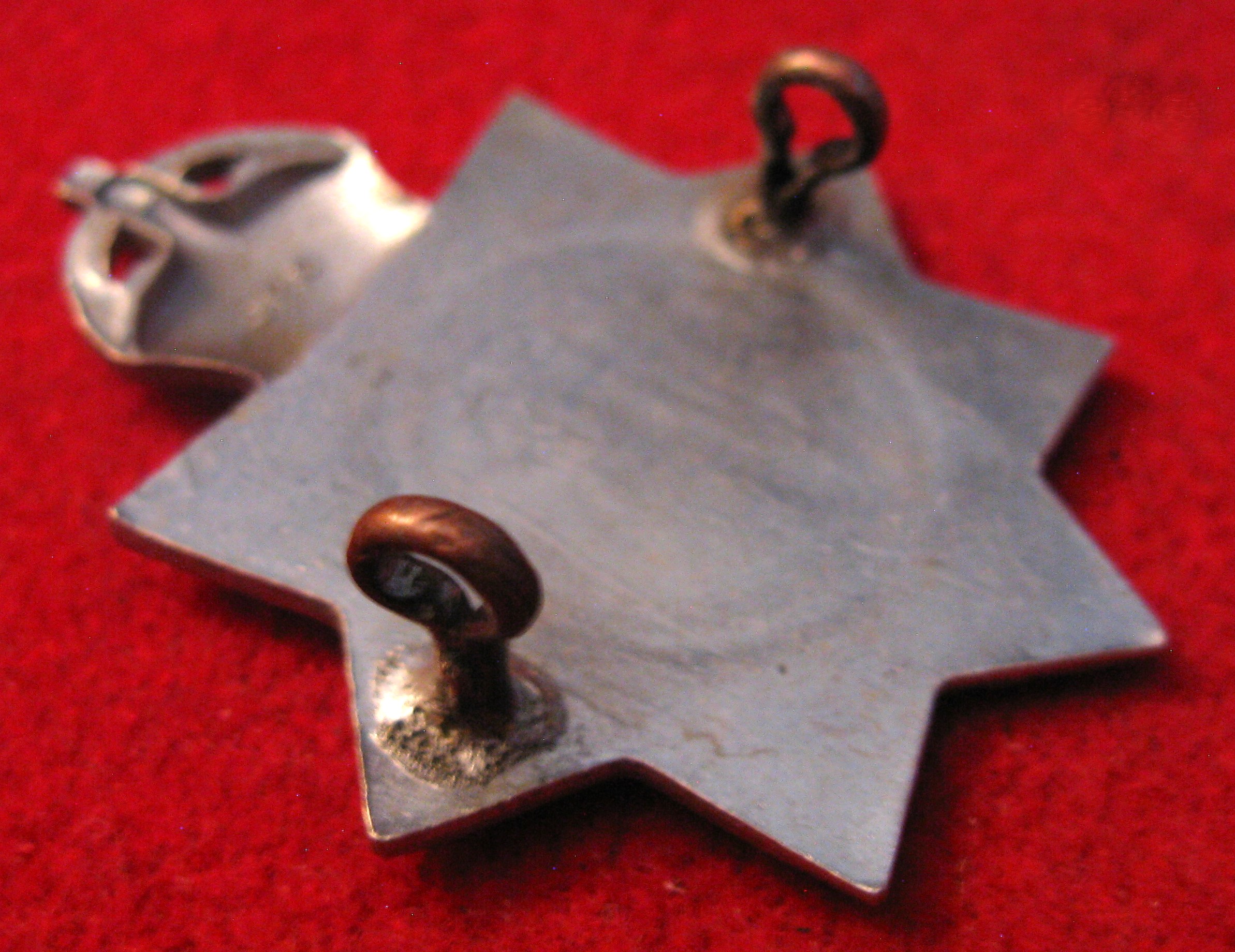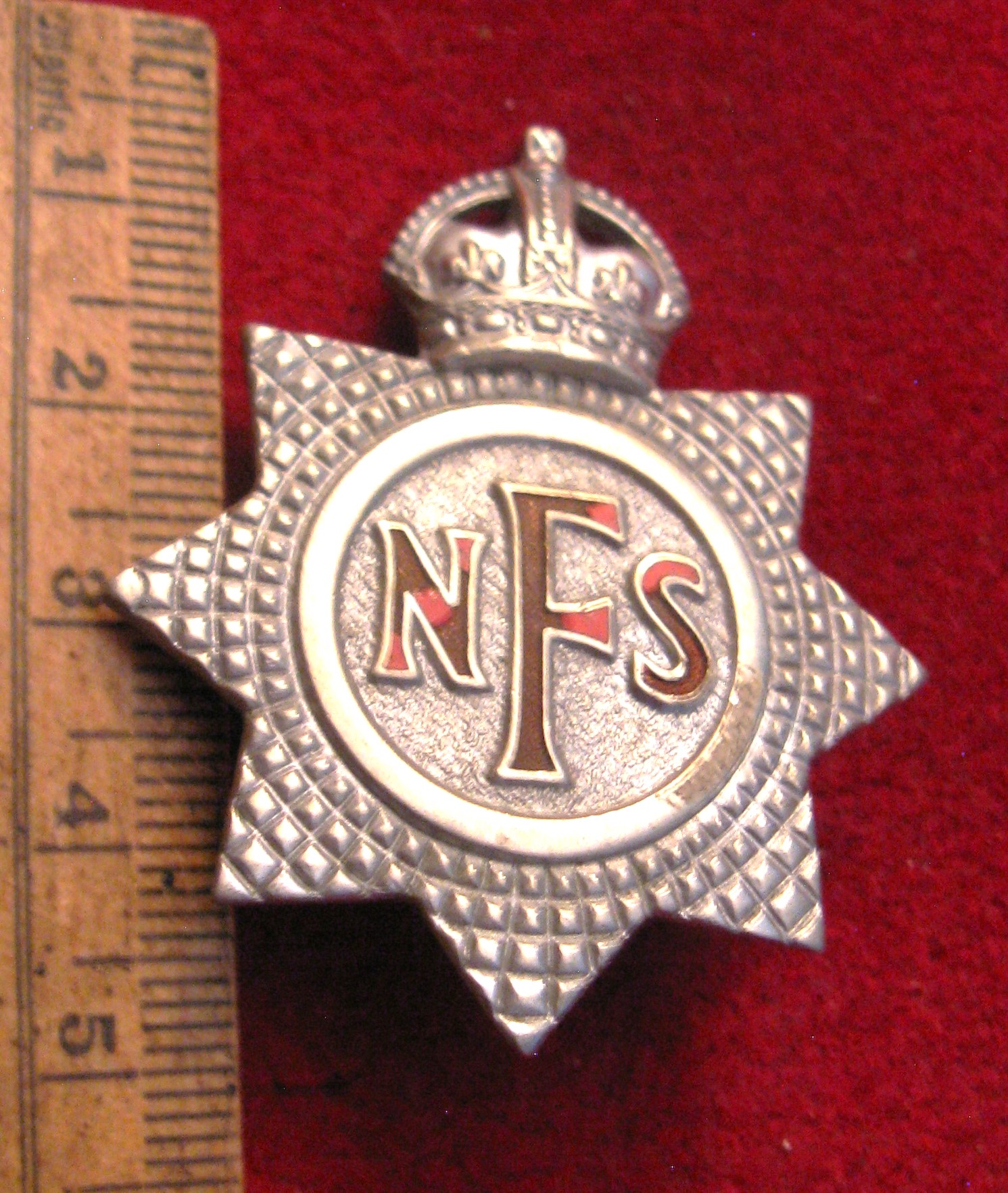 Above are the scans of this 1940's era National Fire Service cap badge. This white metal badge is in excellent condition with both its attachment lug in good usable order.