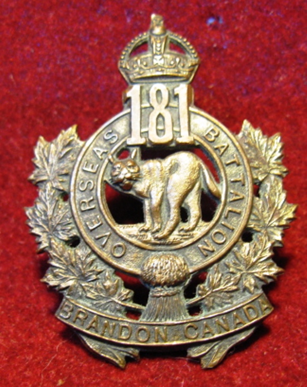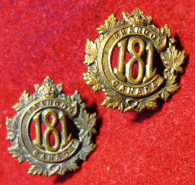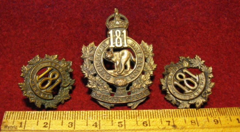 WWI 181st CEF Battalion Cap badge and collar titles (set of 3)