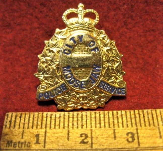 Above are the scans for this rare vintage Saskatchewan Canada Moose Jaw City police collar. Made of what appears to be plated brass, it possesses a spinner type attachment which I believe dates this badge to the 1970's. This is a rare period piece and possessing the typical heavy metal construction of the day.