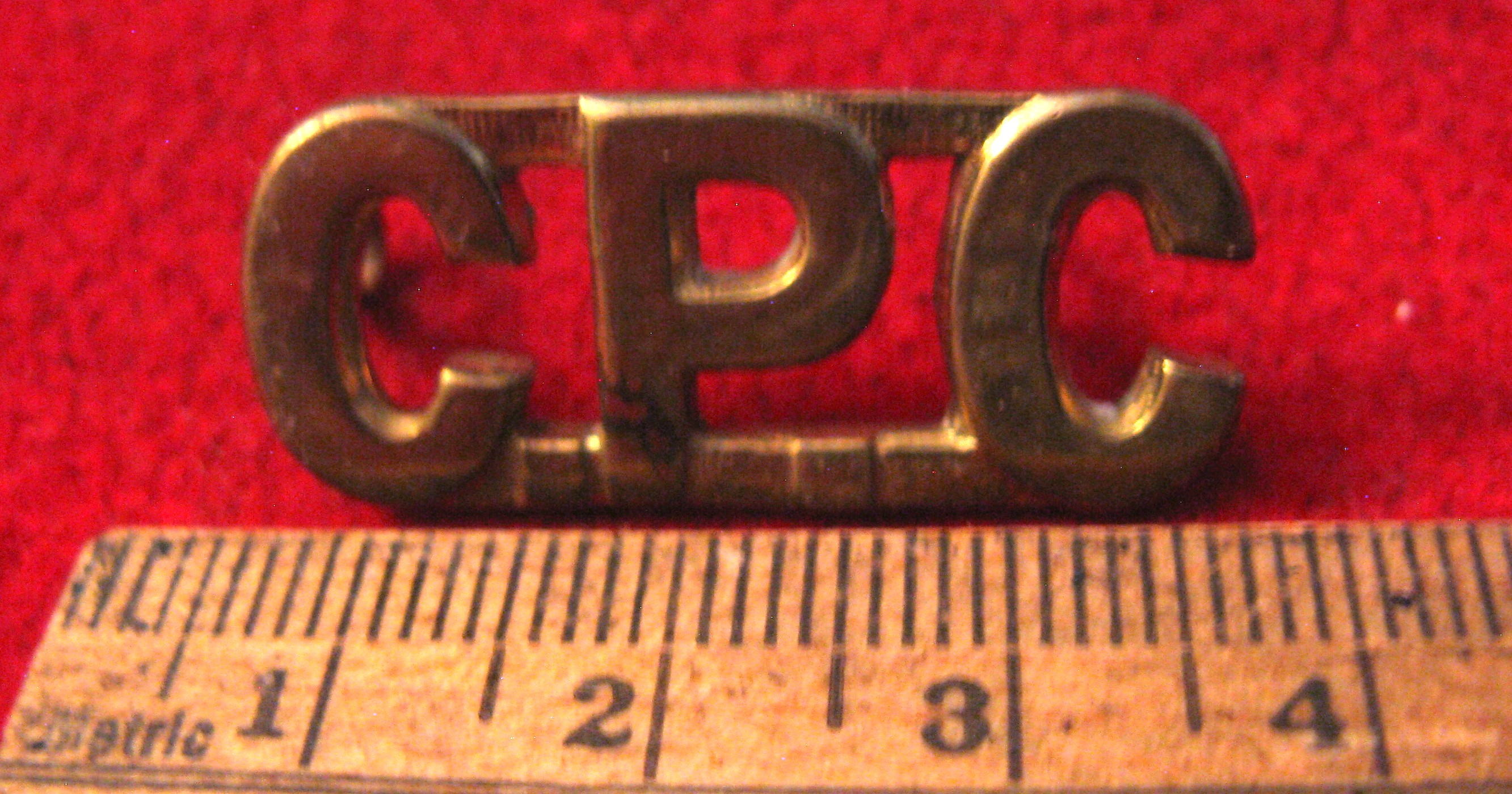 You are viewing the scans for a brass title for the Canadian Postal Corps uniform. Part of the collection shown in the WII KC era Canadian Postal Corps badge grouping (just copy and paste the italiced writing into the search engine on the left to view the whole collection ...