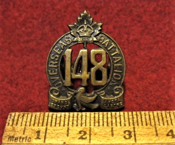 You are viewing a copper 148th Battalion collar devise. Has 2 lugs, horizontally positioned, both original and in good order. A nice clean badge preserving the distinctive details of its design.