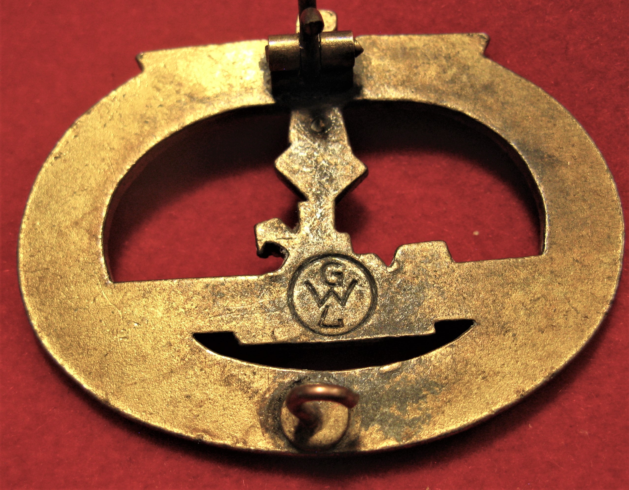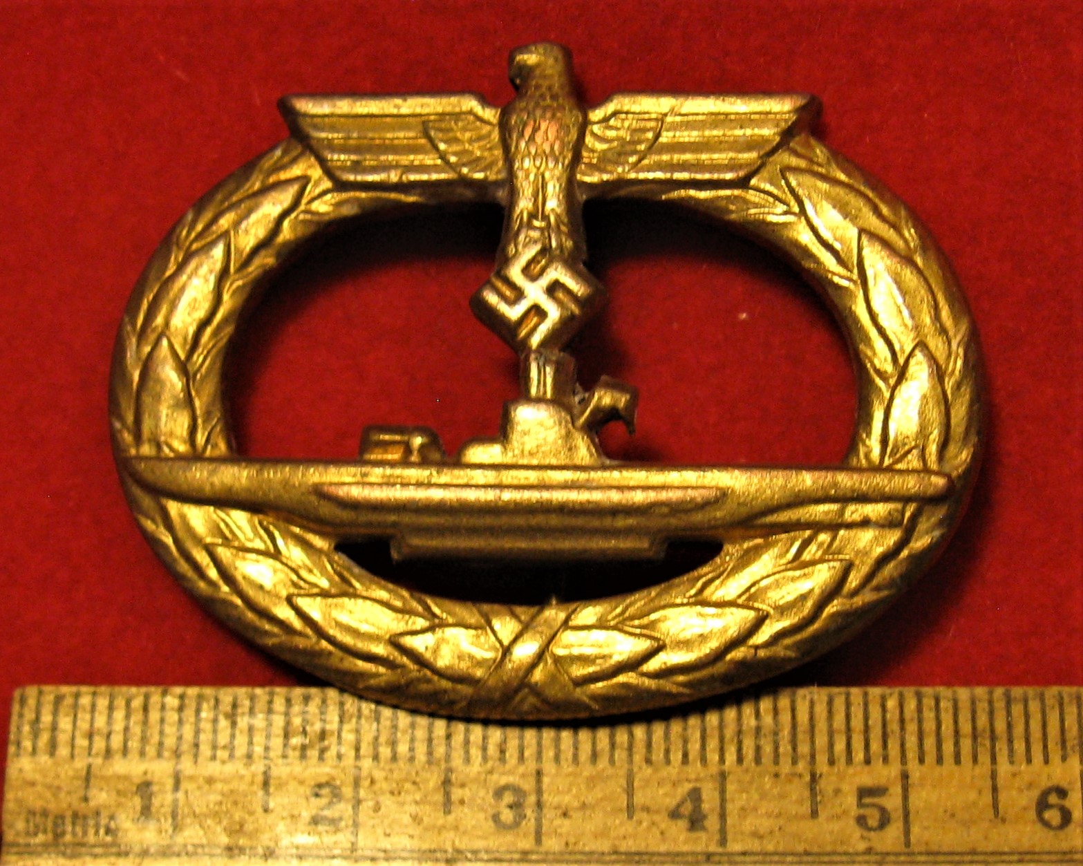 A very fine example of a German WWII U boat brest badge. Complete with straight pin, real nice patina on this heavy brass specimen.. Excellent condition. No more need be said. Enjoy the scans.