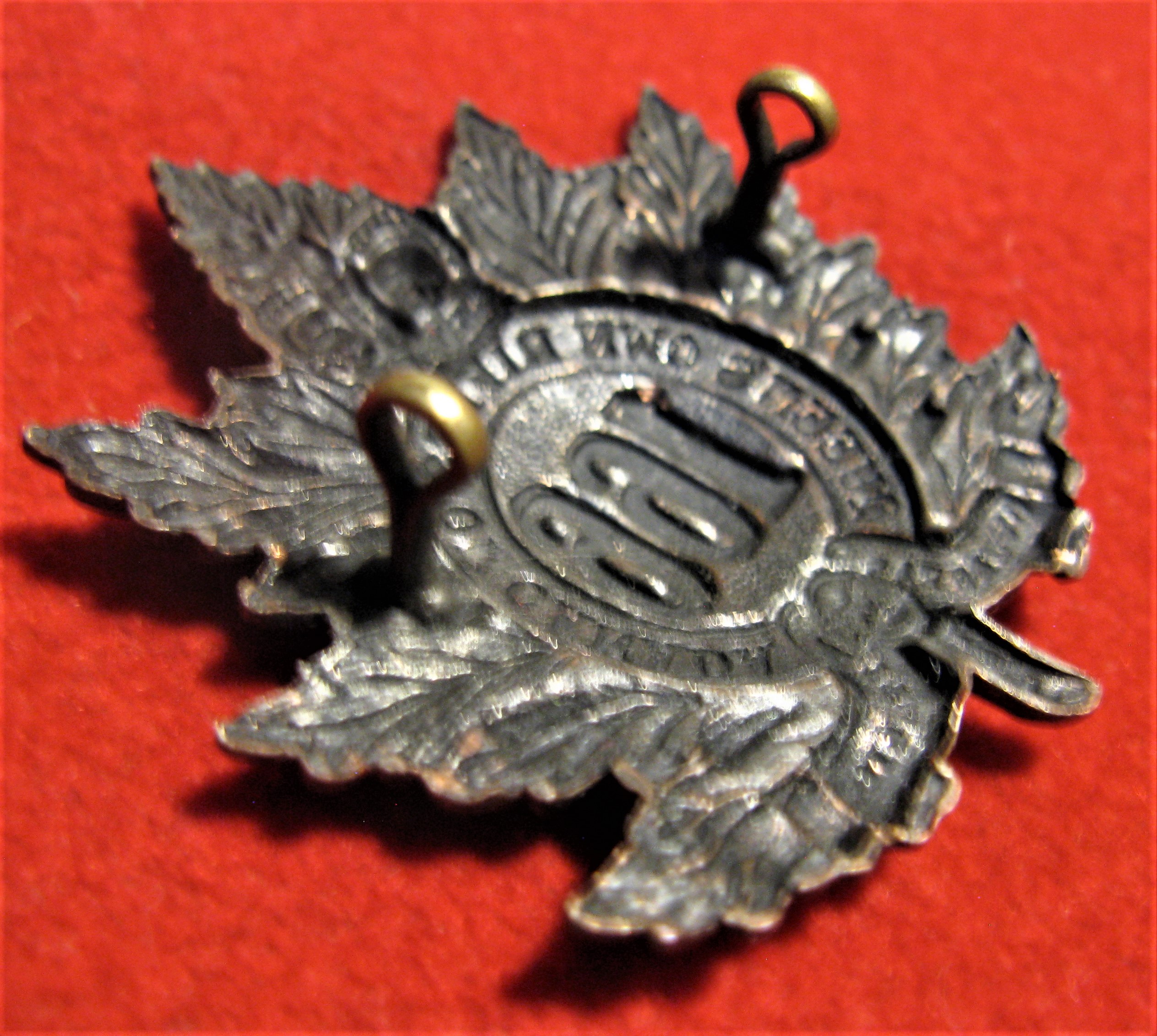 You are viewing the scans for a CEF WWI era Queens Own Rifles cap badge. A beautiful badge in excellent condition. made of browning copper with both welded stem lugs original and in good order.