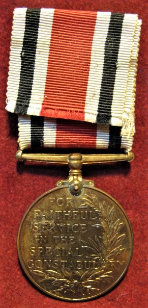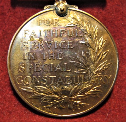 Above are the scans for a WWII era Special Constabulary Long Service Medal. This specimen is made of copper and still retains its design details in good order. This particular specimen is named on its edge to John W. Morton. Comes with its original ribbon as per scans.