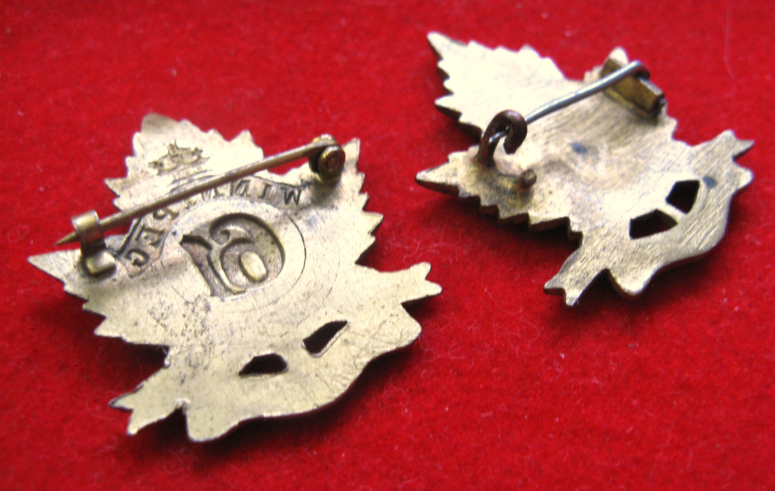 You are viewing a WWI era collar badge set of two, for the 61st CEF battalion. Made of brass with crown over "Winnipeg" scrolling. Have some patina buildup but