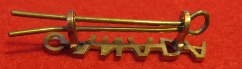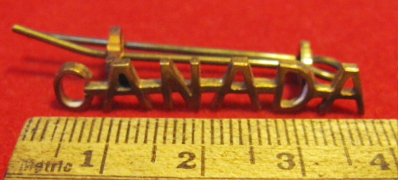 Above are the scans for this WWI era set of curved "Canada" shoulder titles. They come with both sets of horizontal lugs original and in good order. An excellent solid brass set!