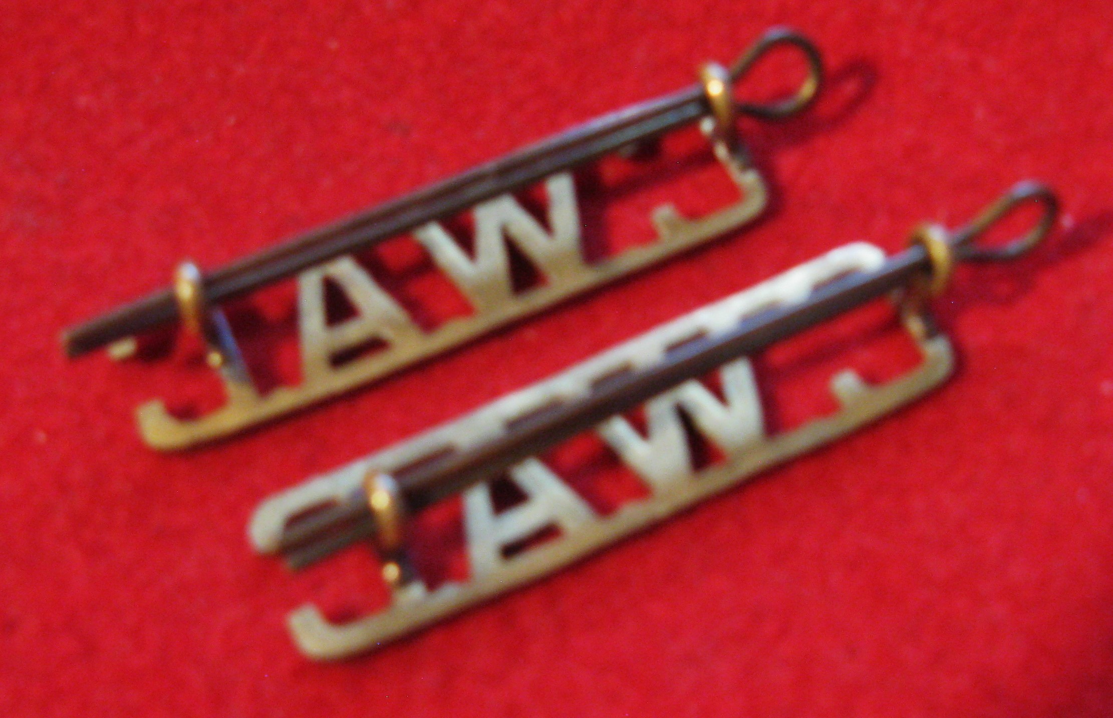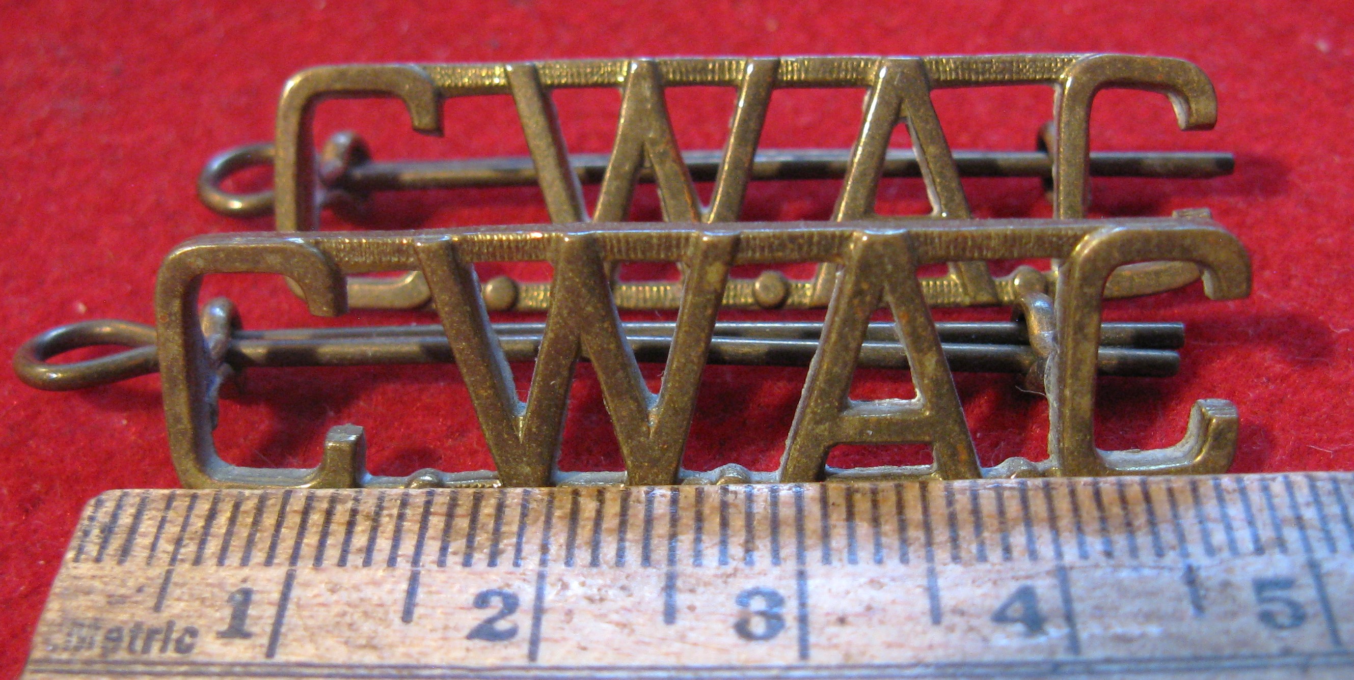Above are the scans for this WWII era CWAC (Canadian Army Women's Corps) title set of shoulder titles. They are clean brass badges, with all horizontally placed lugs original and in good order. Comes with lugs as foundNice set to enhance a uniform.