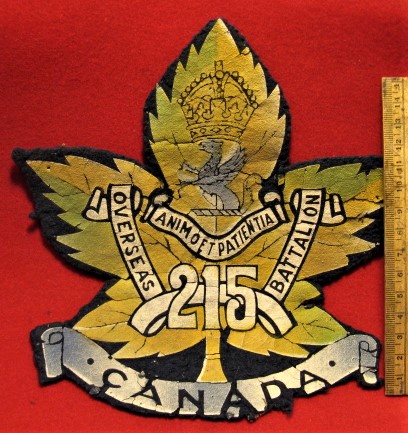 Above are the scans for this rare WWI era Canadian CEF 215th battalion hand painted crest. It is a reproduced 215th battalion cap badge , hand painted on black felt. Still