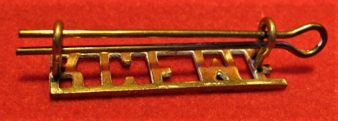 Above are the scans for this WWII era "RCEME" (Royal Canadian Electrical Mechanical Engineers) shoulder title. This example is made of brass. The lettering is smaller than the RCHA lettering in that listing. It comes with both horizontal welded lugs original and in good order as well as its cross pin as found...